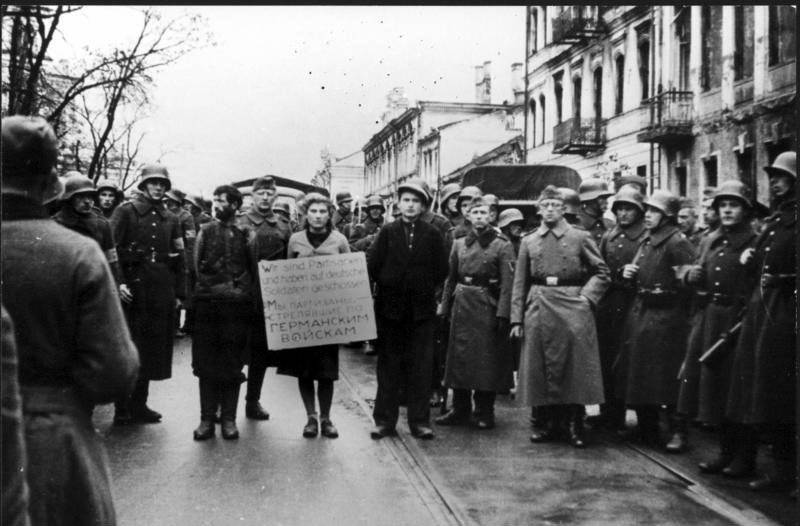 À Minsk, la résistante juive Masha Bruskina et d’autres partisans sont pendus par les Allemands, leur corps laissé sur la potence pendant plusieurs jours, afin de décourager toute autre activité de résistance.